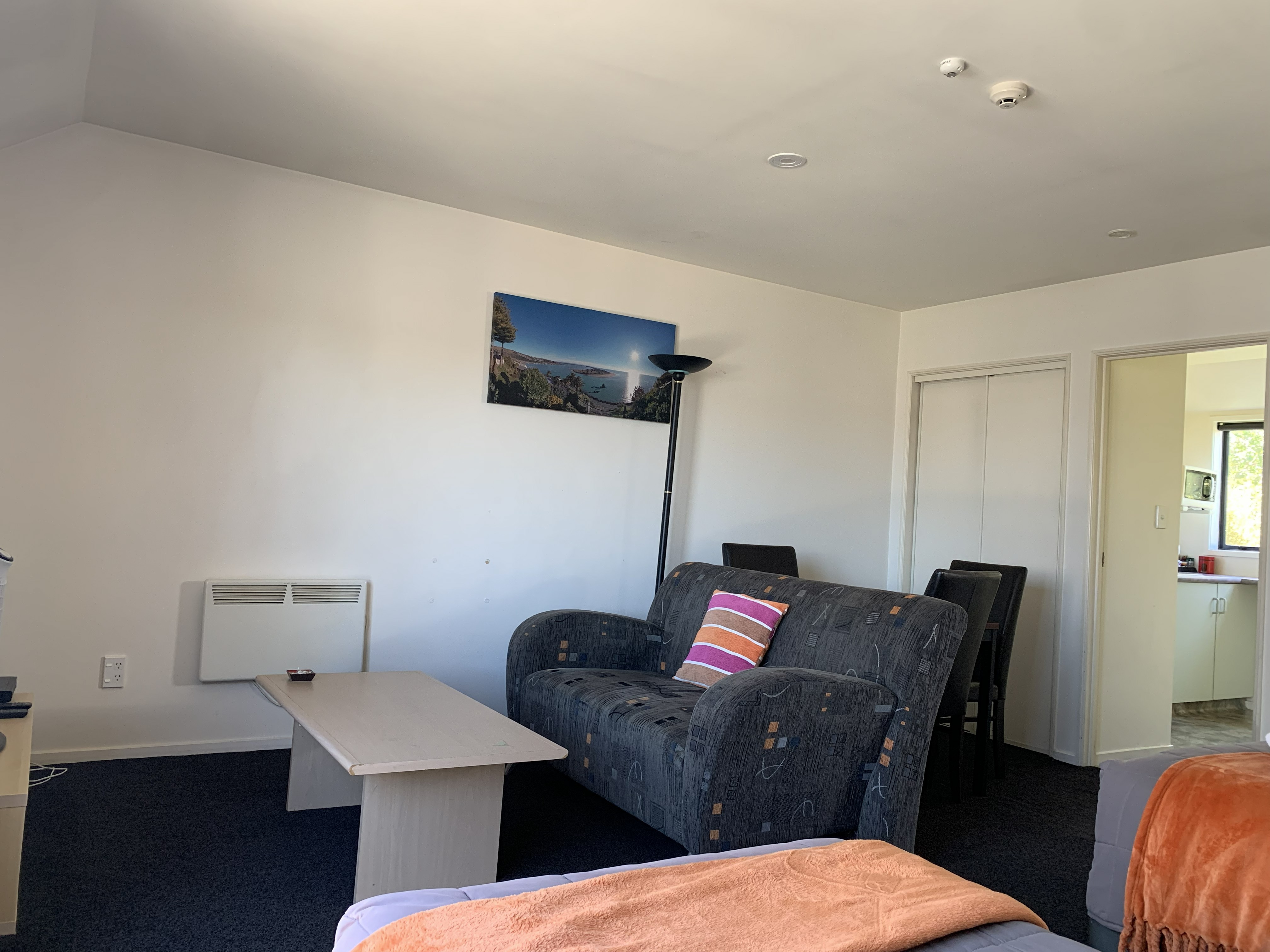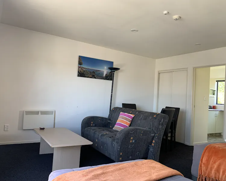 Spacious studio with a queen and single bed, lounge and dining area. The bathroom is large and has a double shower. The unit has a separate kitchen and is situated at the back of the complex and accessed by its’ own staircase, this unit offers peaceful privacy.
