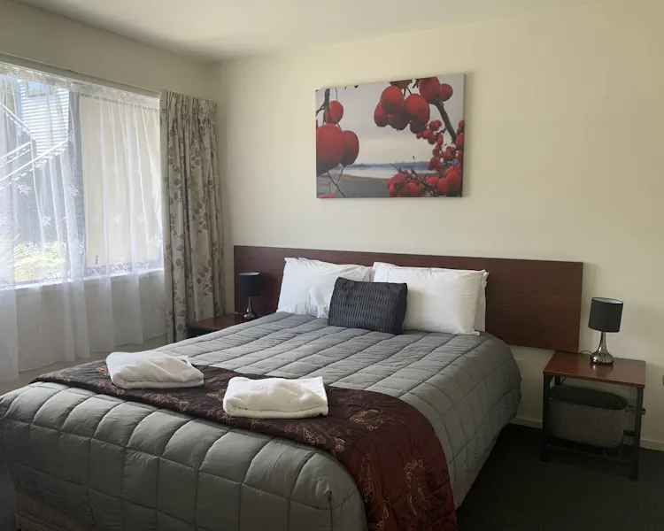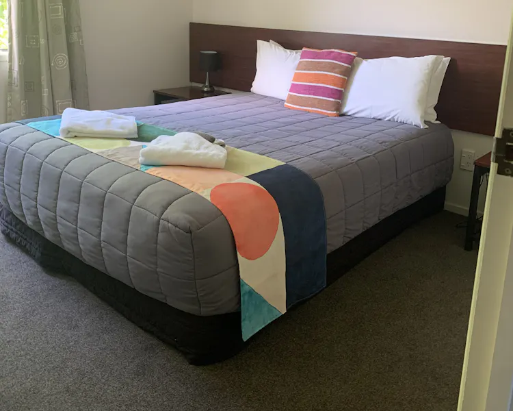 Our two 2 bedroom spa bath unit is situated downstairs and at the back of the complex and so nice and quiet. One bedroom has a queen bed and the other has two single beds.