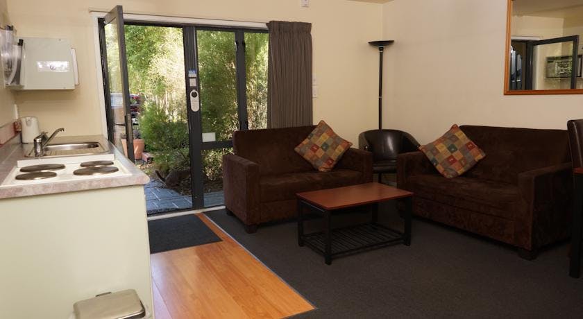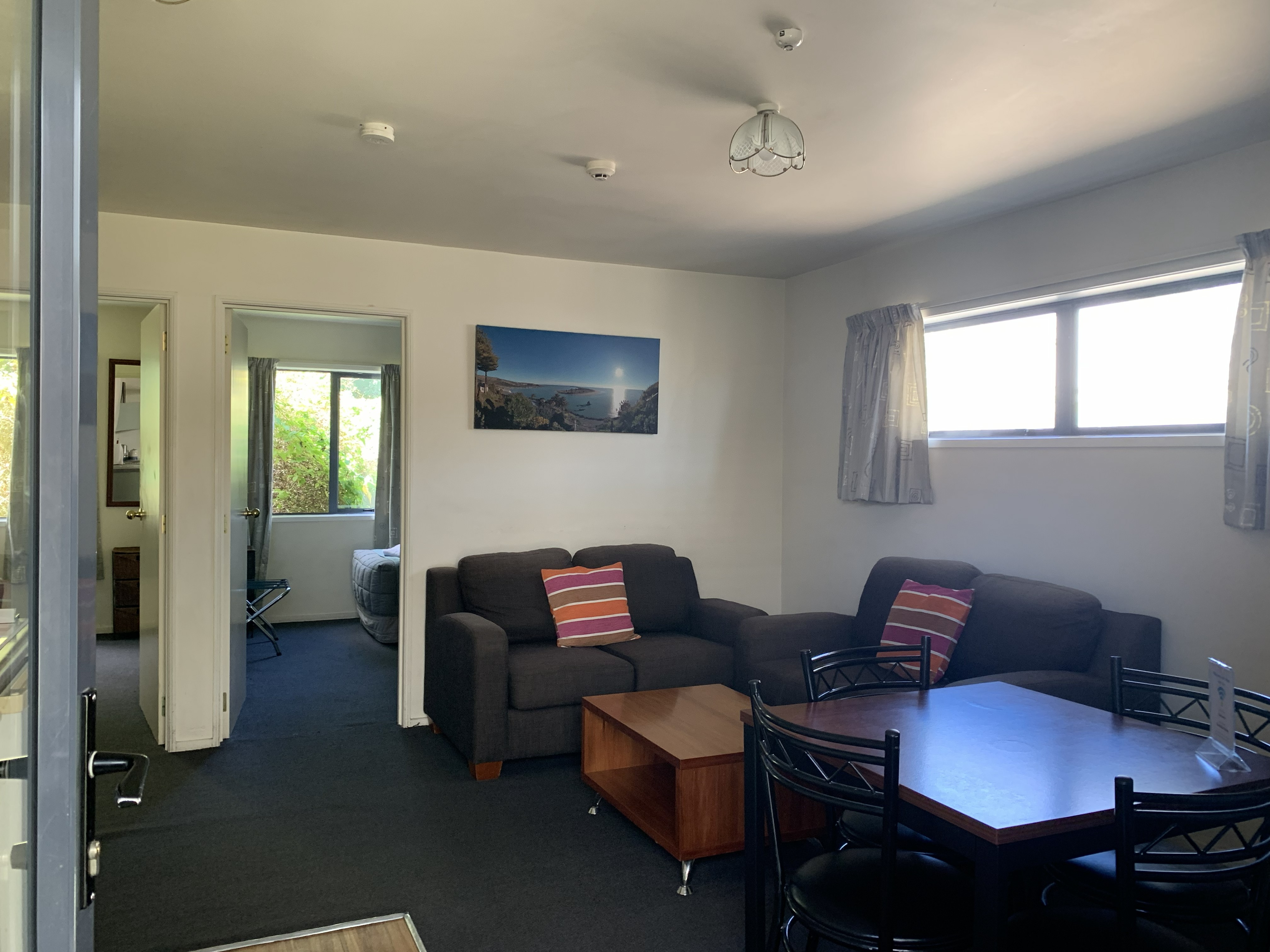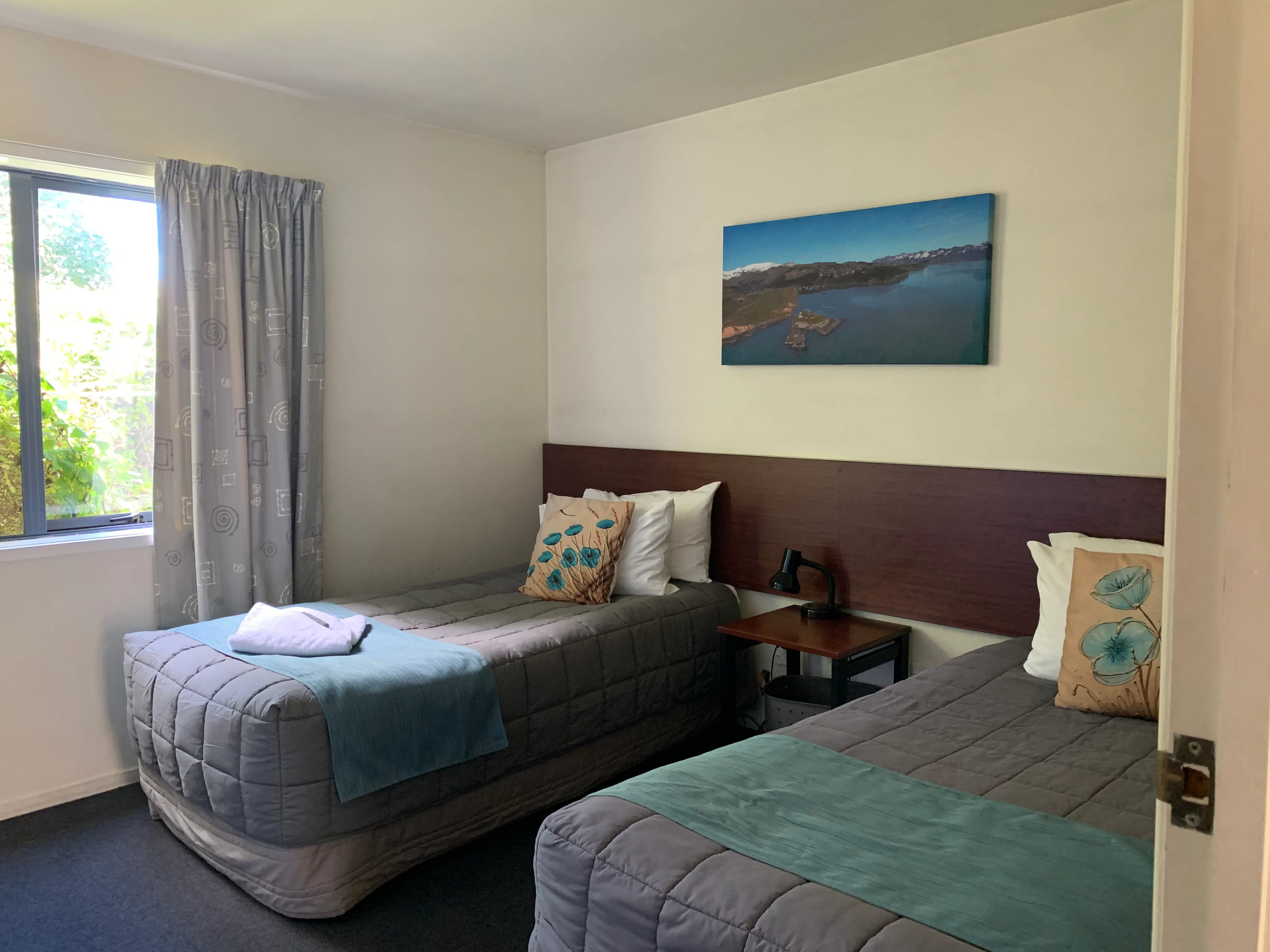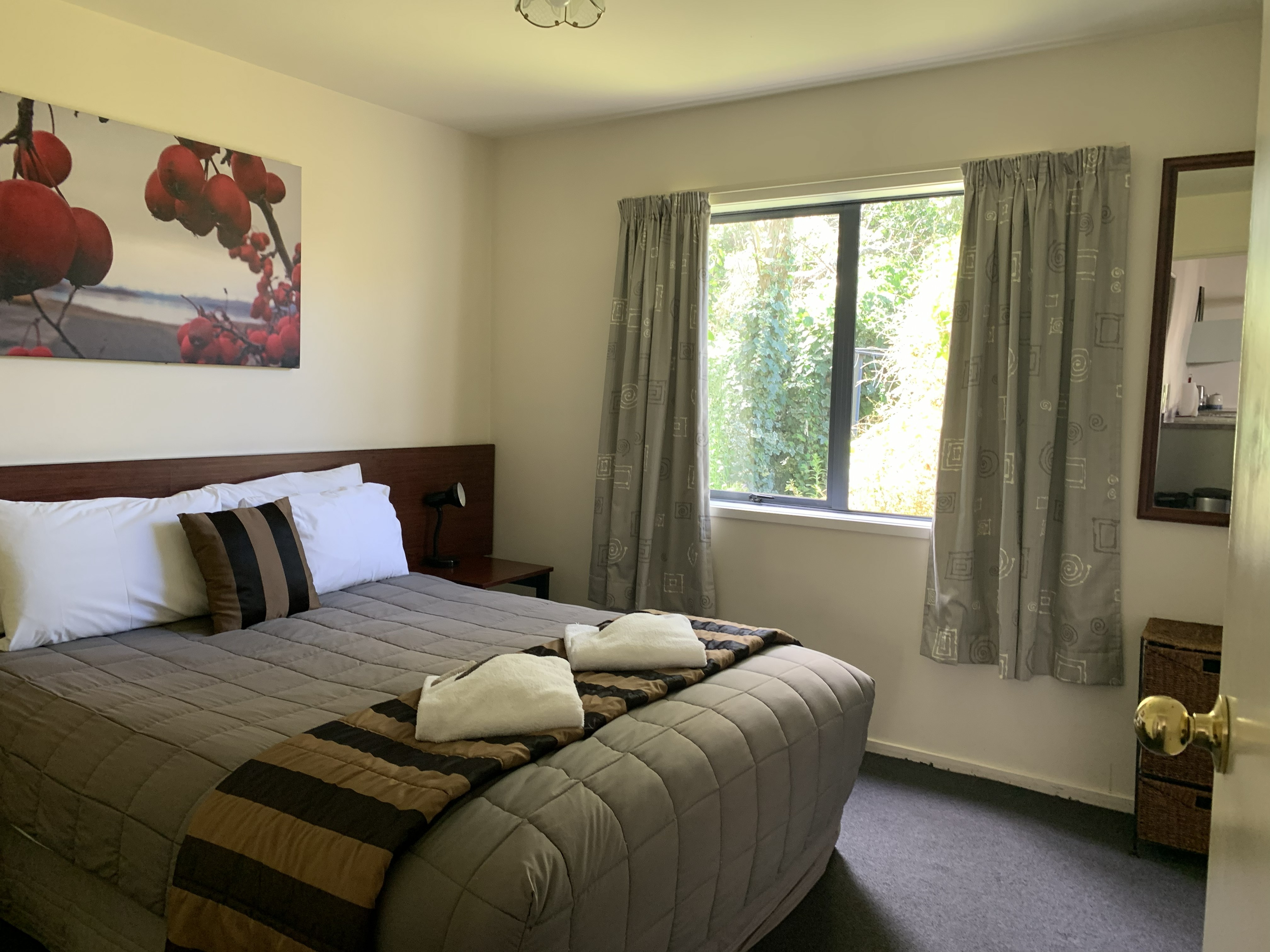 Our two 2 bedroom spa bath unit is situated downstairs and at the back of the complex and so nice and quiet. One bedroom has a queen bed and the other has two single beds.